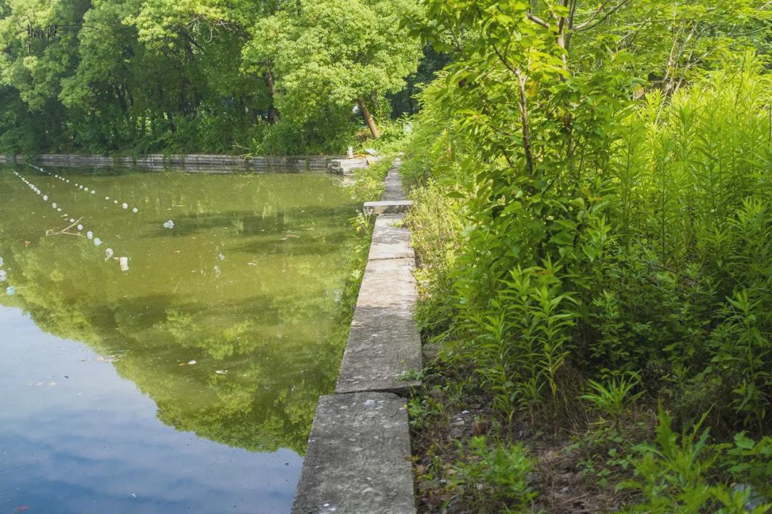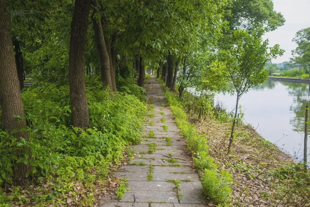 但置身其间后你就会发现,鱼塘跟河道之间的通道都还算宽敞,只是因为平时游客不多,所以大部分都杂草丛生,或者覆盖着一层厚厚的青苔。