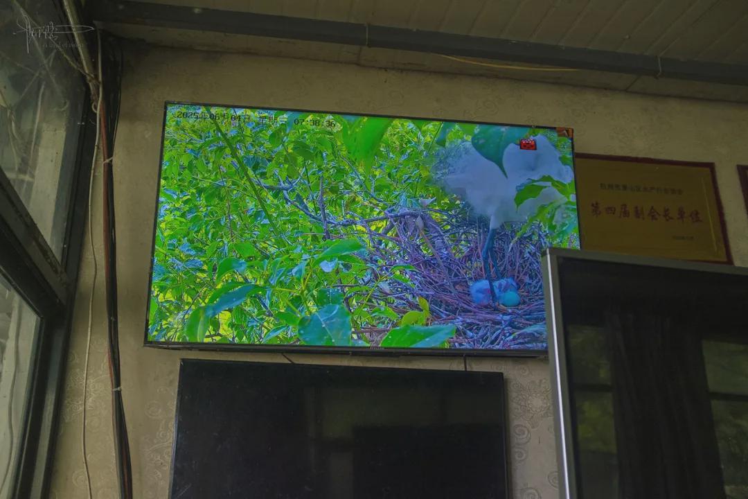 萧山雁荡湿地位于瓜沥镇大义村,总面积约80公顷,由河流、湖荡、养殖塘、水田、林地等组成,生态环境自然是极好的。按导航来到这里,发现想进湿地必须经过一座水上长桥,入口处还有一排房子,既像是前面鱼塘的管理处,又像是景区的游客中心。好在出来的大伯大妈都没常热情,知道我是来拍鸟的后,还邀我进屋内,特意放监控给我看。原来在湿地深处,有几个鸟巢的旁边已经被安装上探头,所以连这几只鸟下了只颗蛋,已经孵出几只,他们都是了如指掌。