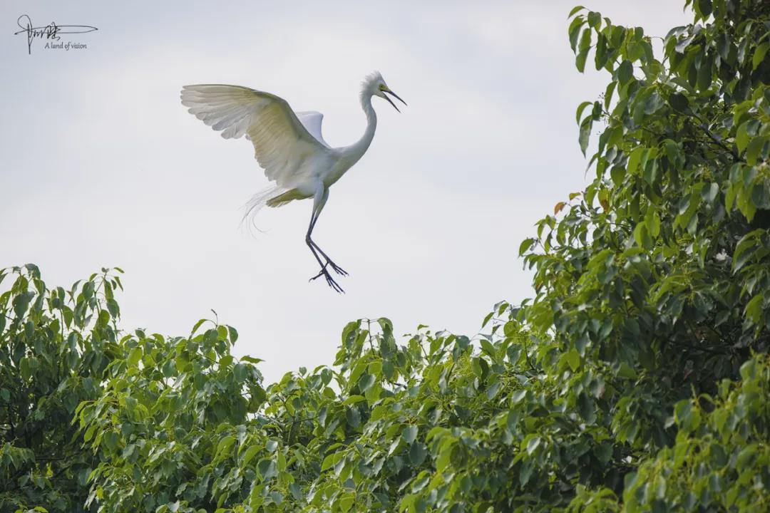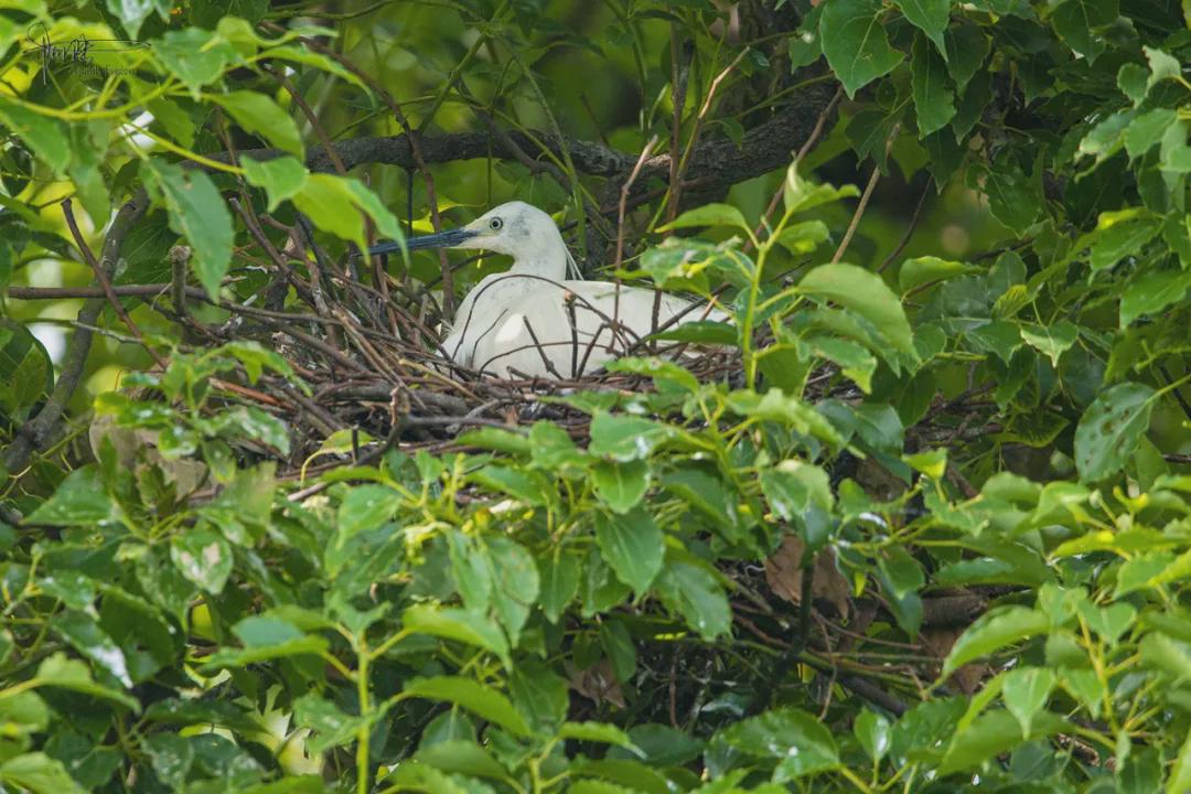 可惜在我看来,湿地虽然对外宣称是“观鸟胜地”,却唯独没有建设出一座可以俯瞰鸟群的观景平台。所以大家来到这里后就会发现,我们只能以地面视角观察鸟类,特别是现在鸟窝风景特别出众的时候,只能抬头“望窝兴叹”,实在有些无奈。像我好不容易钻进树林深处,找到个几乎可以平视的角度,但等了半天,也没能拍到雌鸟展开“繁殖羽”的画面,真是太遗憾了。