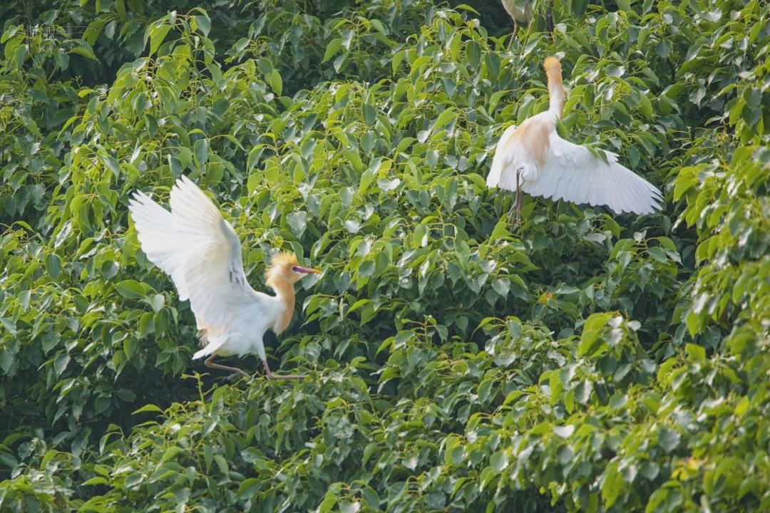 在热心网友的“指点”下,我在前几天来到这个被浙江省林业局认定为首批12个“浙江省观鸟胜地”之一的“萧山雁荡湿地”打了个卡。虽然没遇见特别珍稀的品种,但正值鸟类繁殖和孵化期,所以倒是远远见证了一些苍鹭、牛背鹭、夜鹭和白鹭们忙于筑巢觅食和护仔的场景,尤其一些刚开始学飞的雏鸟,毛都没长齐就开始在茂密的枝叶中上窜下跳,场面十分可人。