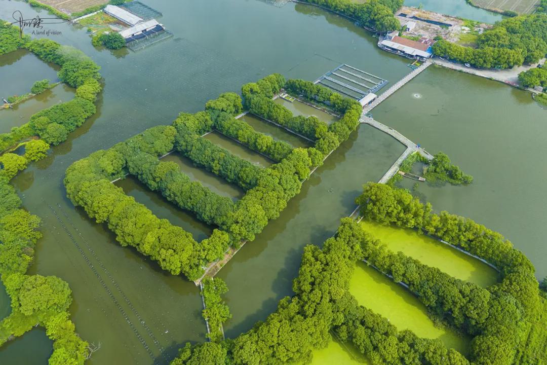 聆听过大伯大妈的轮番介绍后,我便迫不及待地往里走。这个湿地生态园的布局其实挺有意思,貌似由很多工工整整的小鱼塘组成,且相互之间都被浓密的参天大树包围和连接,一眼望去,尽是养眼的绿。