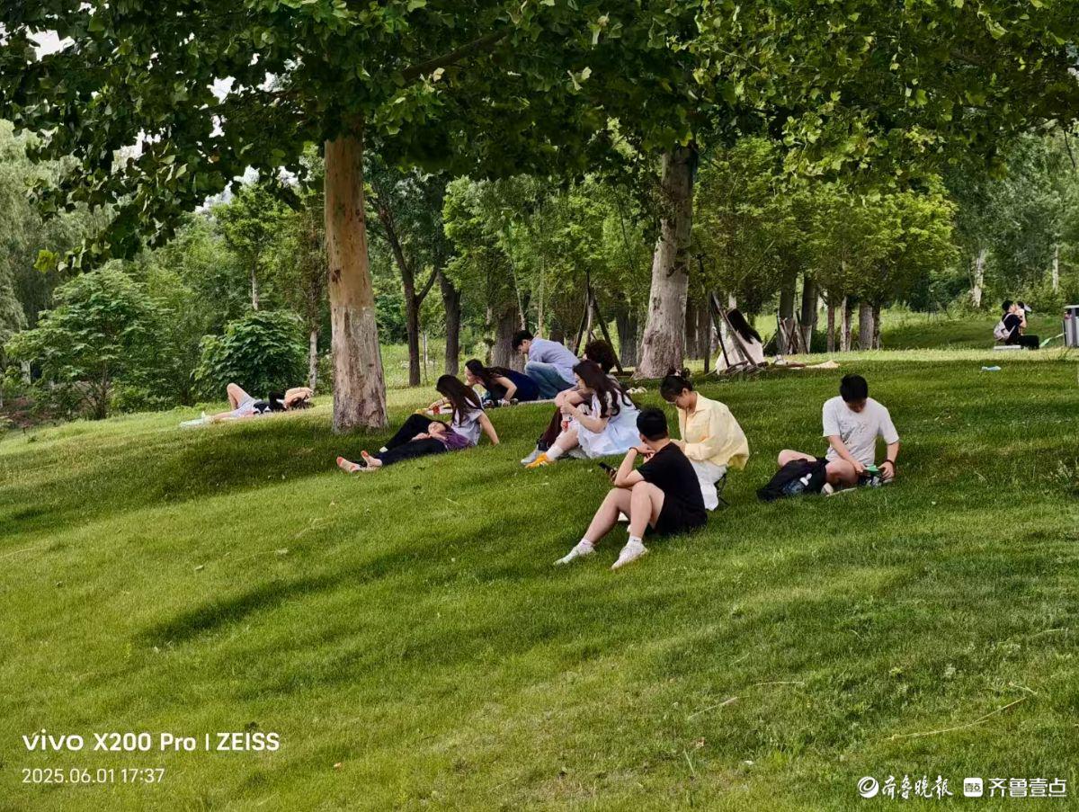 近日,多地行道树被穿上了五颜六色的“毛衣”等装饰物防寒保暖。 ↑2025年12月14日,市民在...