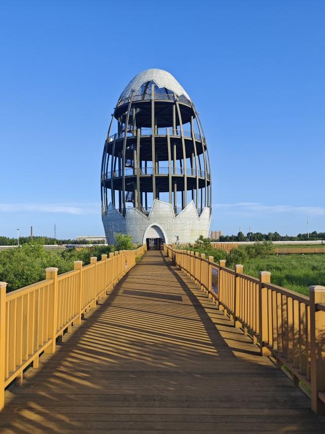 游客可漫步木栈道欣赏湿地景观,感受自然之美;观光塔像一个湿地中的蛋壳,被网友们打趣称为“蛋塔”,可登塔看鸟儿飞翔,是休闲观光与科普教育的好去处。