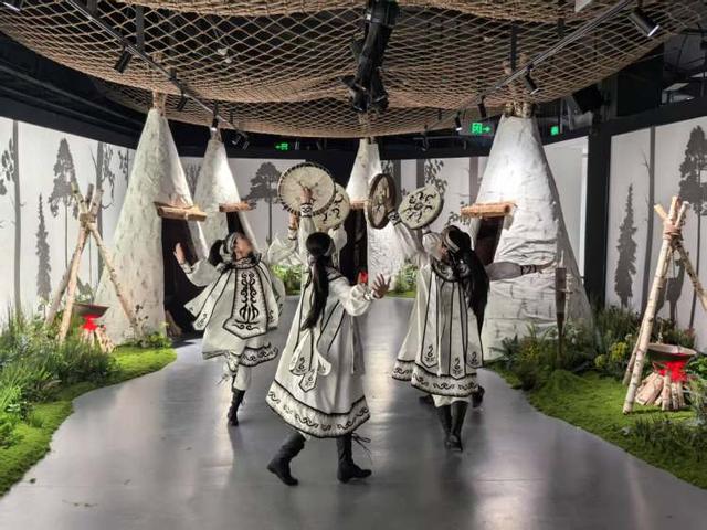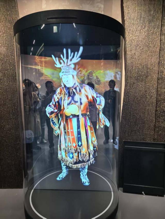 体验馆内,一幅幅精美的“鱼皮画”在灯光下仿佛鳞片翕动,古老的“伊玛堪”说唱声通过全息影像低回萦绕。