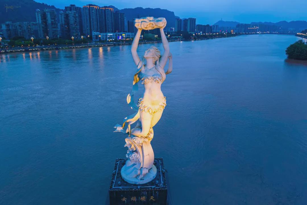 出乎我意料的是,这个女娲广场其实并未完工,内部甚至仍堆着不少建筑材料,有些墙面还裸露着电线线头。但因为环境打造得确实不错,所以很多老百姓都会来这里休闲散步和溜娃或遛狗。再加上厕所难找,便顺理成章地让我放弃了在这里露营的想法。