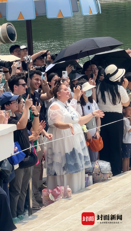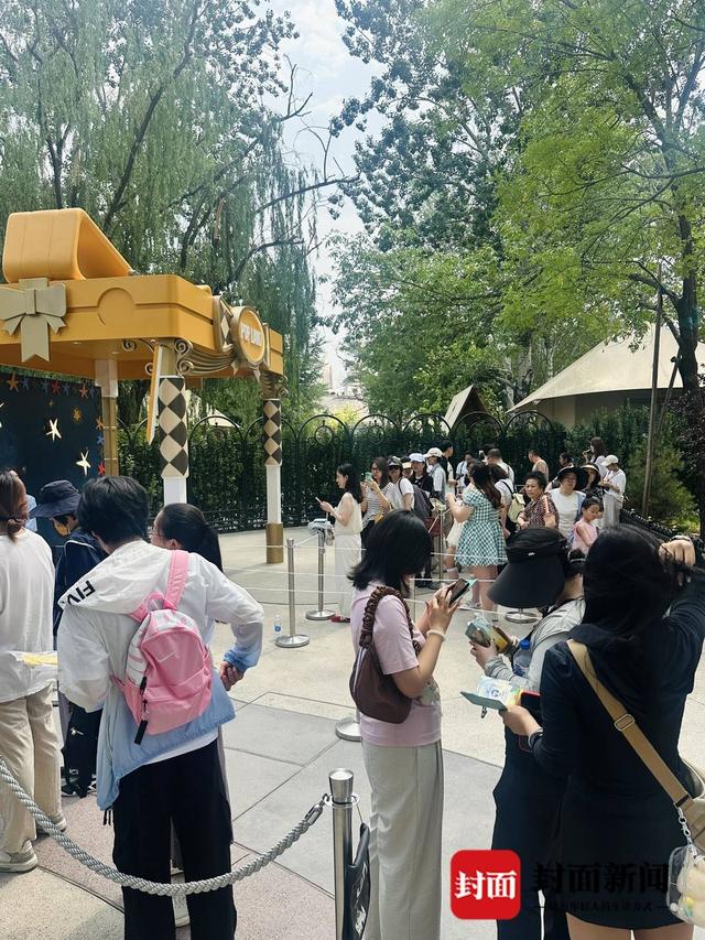 6月13日,封面新闻记者来到乐园实地探访,尽管三分之二区域封闭改造,但游客还是很多。为了和顶流明星Labubu合影粉丝们不惜在烈日下排起长队,游客们大包小包地选购着“乐园限定”款Labubu周边产品,其公仔货架屡被扫空。一位外籍游客抱着Labubu向记者感叹:“太火了,在家乡都买不到呀,这里的沉浸体验太棒了!”