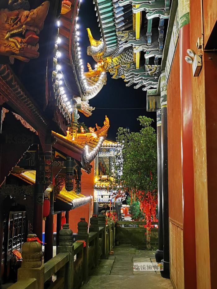 灯光映衬下的重檐屋顶显得古朴沧桑