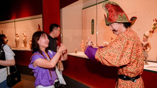 记者了解到,不仅展出文物的数量是奉贤博物馆开馆历史上之“最”,本次特展更在形式上大胆突破,以“角色扮演”式观展和历史人物NPC(非玩家角色)沉浸式互动表演的方式,带领观众“穿越”回大唐盛世,全方位体验唐人的衣食住行、诗酒茶香,领略浓墨重彩的大唐文化。