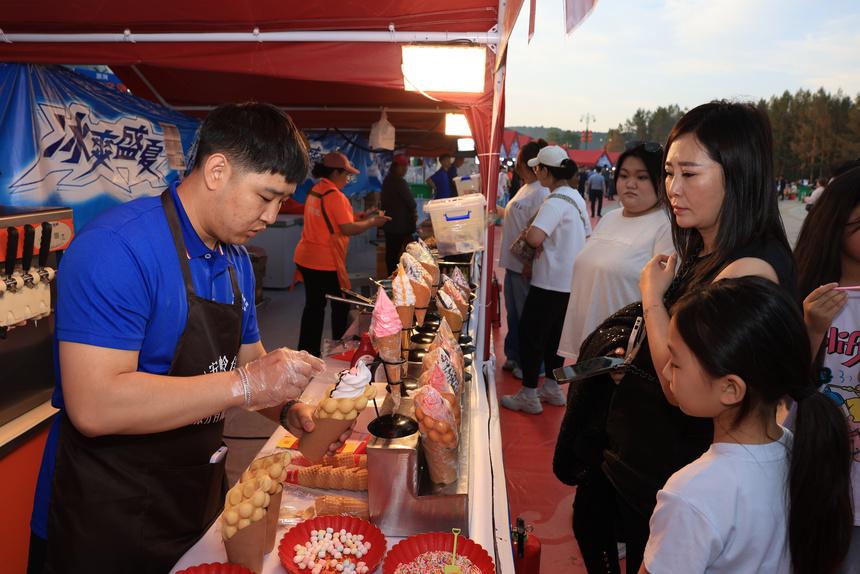 白昼悠长,星空夜市也热闹起来。特色摊位鳞次栉比,璀璨的灯光与空气中弥漫的美食香气交织,勾勒出一幅充满活力的市井画卷。来自北京的游客张先生穿梭在摊位间,感受着漠河独特的“夜经济”魅力。“这里的夜市太有烟火气了,美食种类很多,我刚吃的烤串,每一样都想尝尝,根本停不下来。”摊主们热情的吆喝声此起彼伏,游客们手持美食,脸上洋溢着满足的笑容。