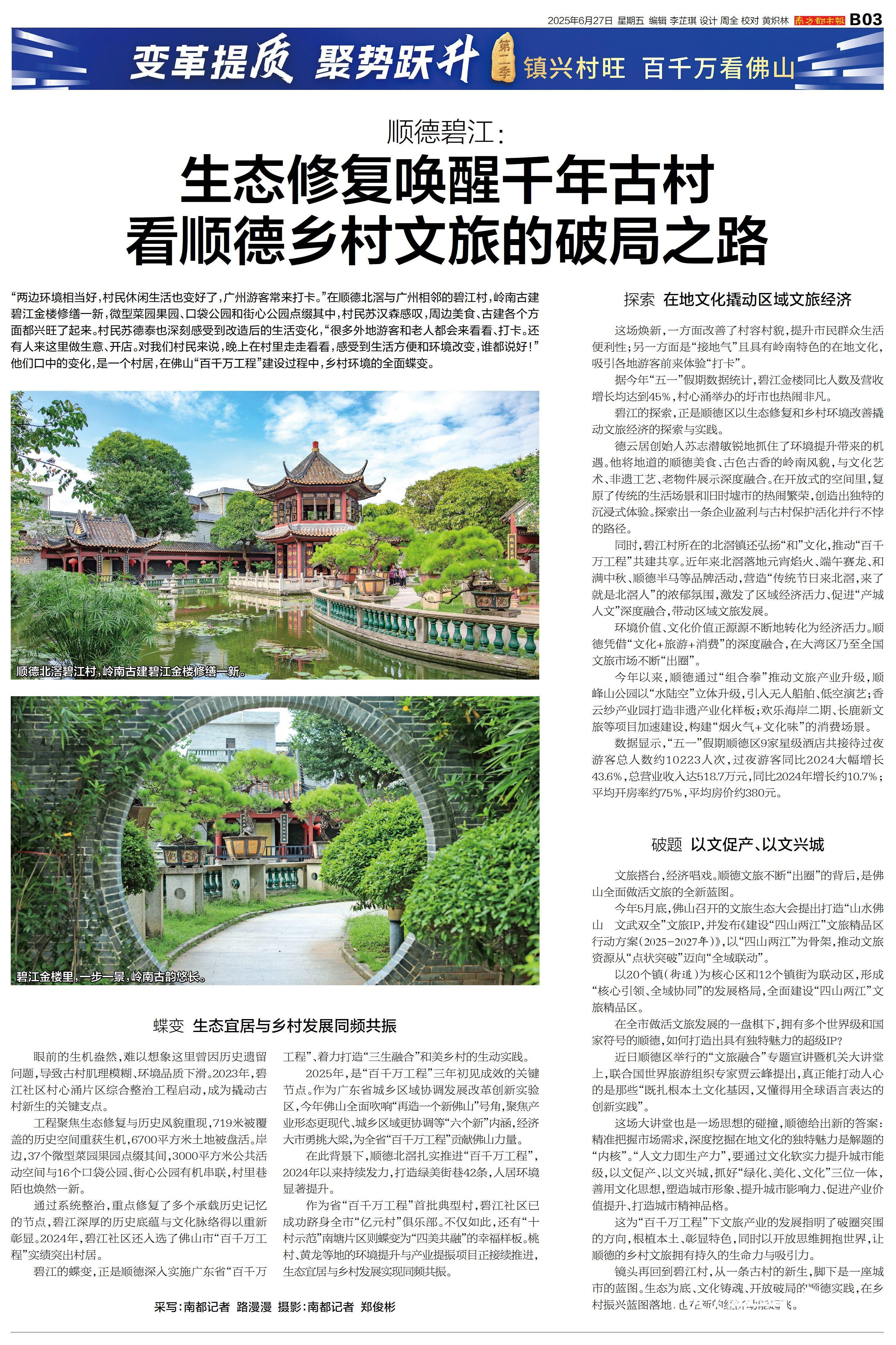 碧江的蝶变,正是顺德深入实施广东省“百千万工程”、着力打造“三生融合”和美乡村的生动实践。