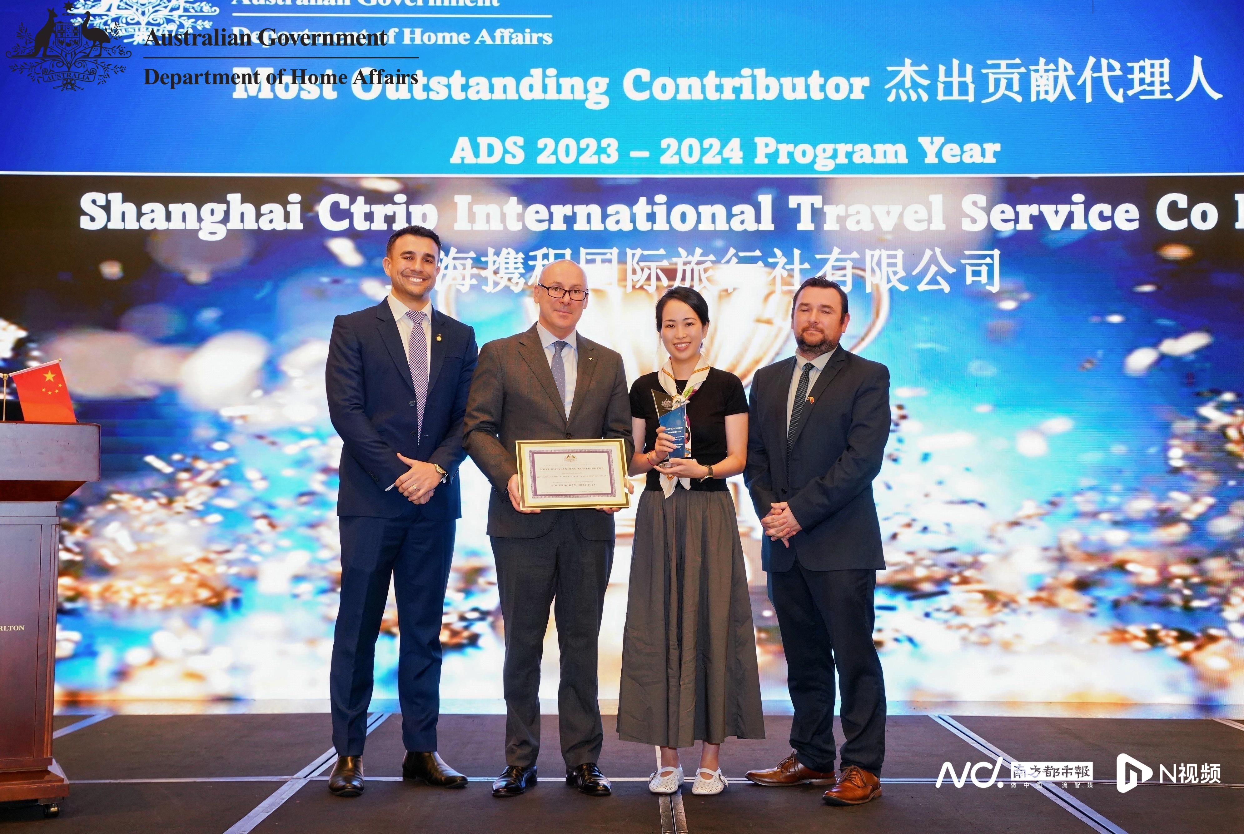 携程从2003年开始涉足并发展签证业务,从产品设计、材料递交、客户服务等各方面悉心打磨,成就了签证行业的标杆地位:近期,携程在澳大利亚驻广州总领事馆举办的ADS旅行社会议上,因“2023-2024考核年突出的递交量及高质量交付”在125家旅行社中突破重围,荣获杰出代理人奖项;此外,在上海日本领事馆指定旅行社培训会上,上海携程也作为上海地区唯一一家旅行社代表上台做分享,其严格审核、全流程管理及智能工具也获得官方与同行高度认可。