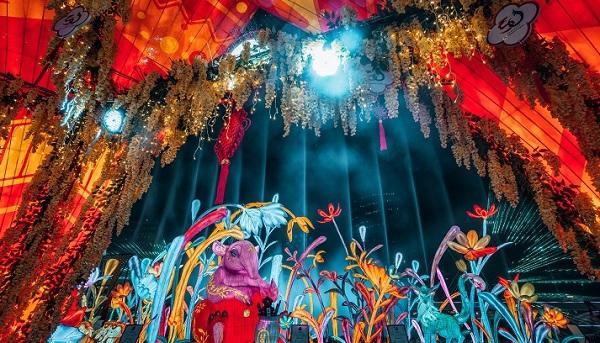 西部岛屿由《山海经》神兽白泽守护,这里既是中泰风情市集,也是人气打卡地。中泰友谊之花灯组以牡丹、金链花等两国名花交织,寓意友谊如花绽放,浓郁的烟火气让此地成为灯会焦点。