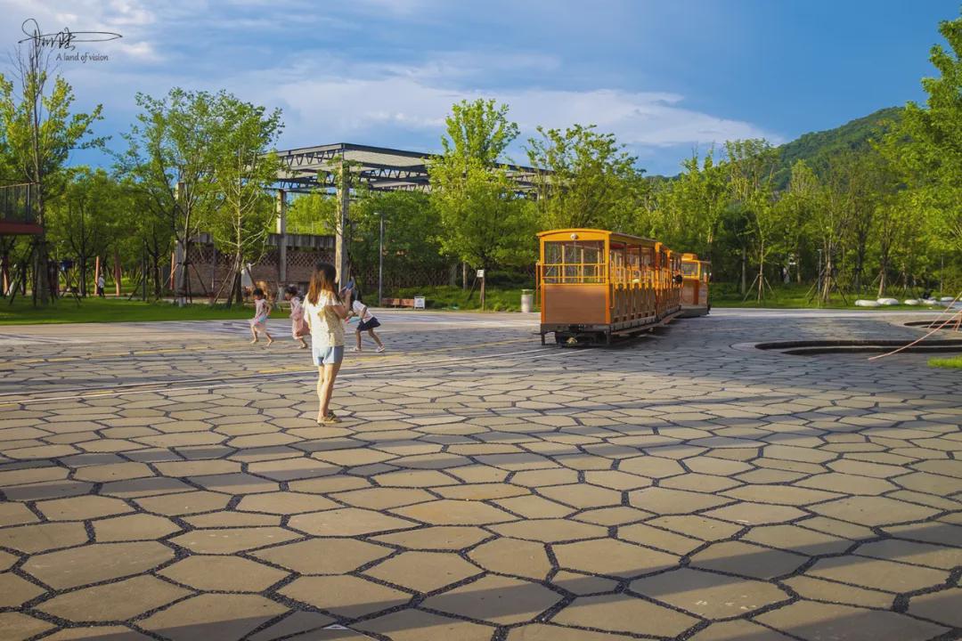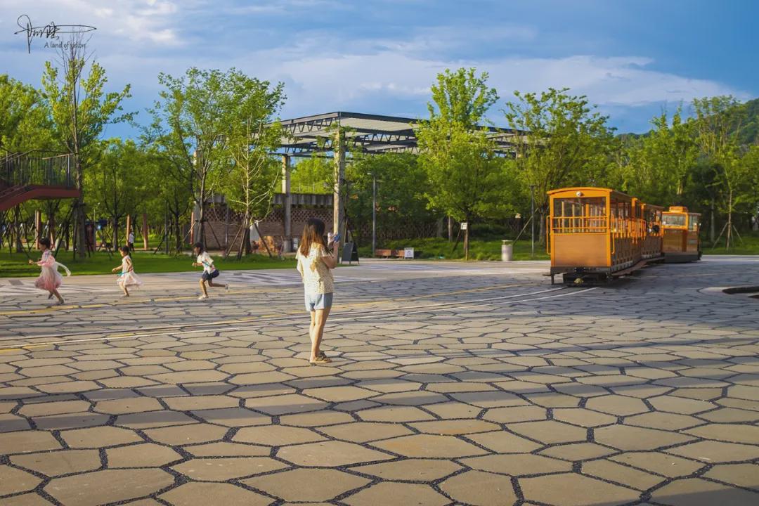 可惜我是第一次过来打卡,所以没拍到小火车在水面上穿梭而过的画面,看着它缓缓而去的背影,倒也觉得这种设计挺有意思。能在车辆的行驶过程中感受大杭钢的工业与自然融合,这样的体验国内还有哪个公园能够做到?
