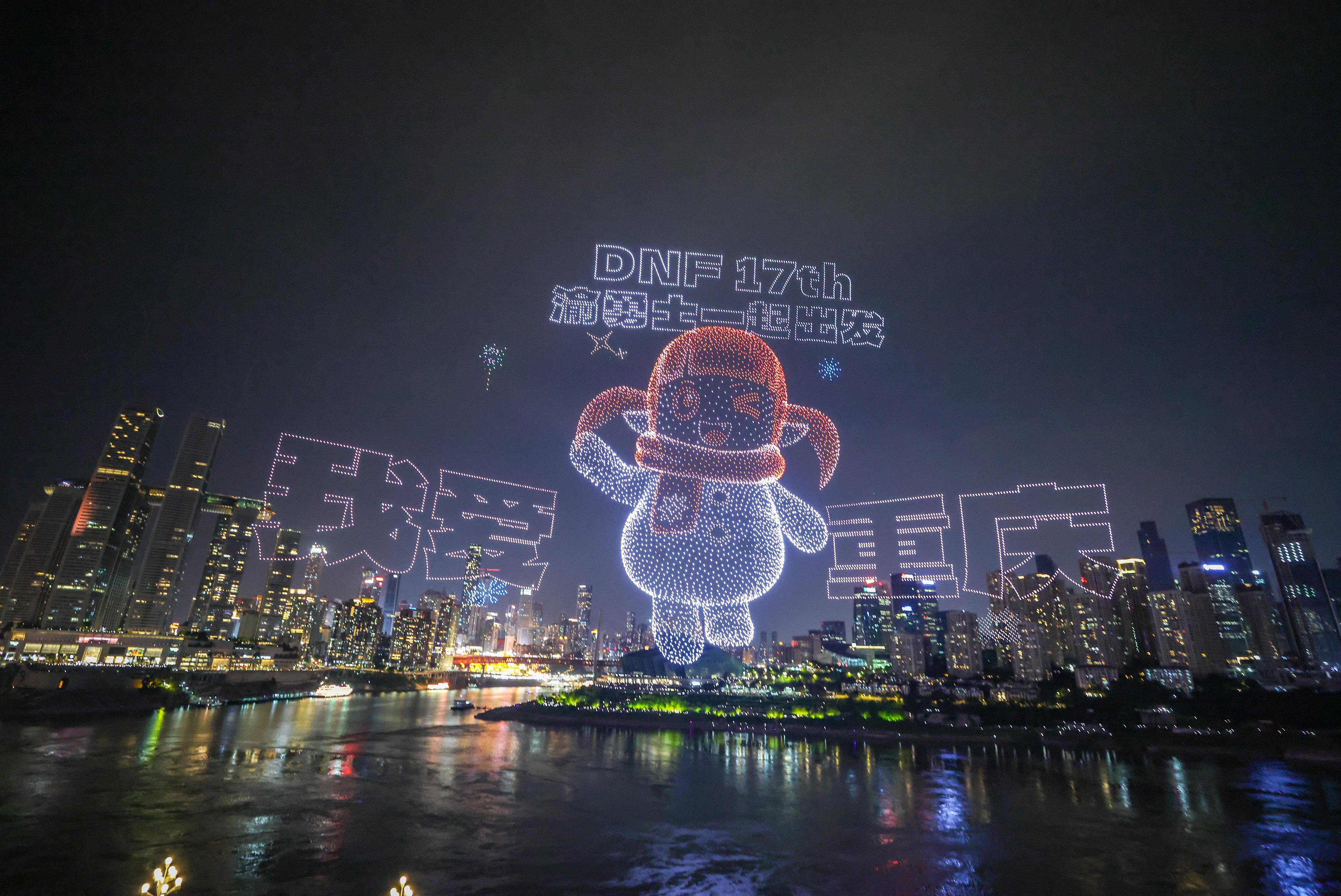 6月17日晚,重庆举行超大规模无人机灯光秀表演,由11787架无人机组成的双编队飞行从重庆市南岸区弹子石广场起飞,创造了“最多无人机组成的空中图案”吉尼斯世界纪录。(新华社)