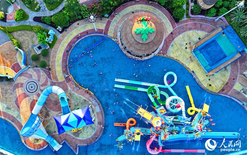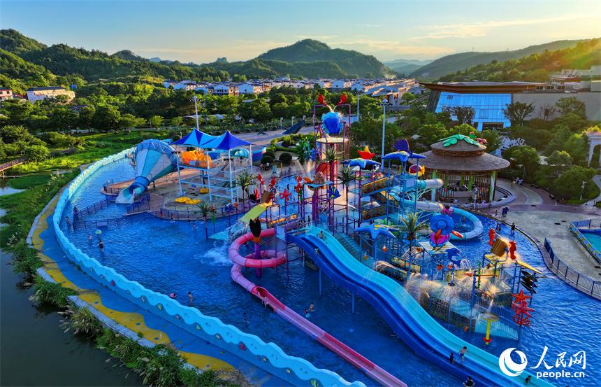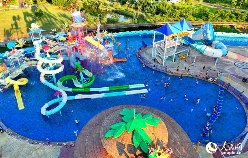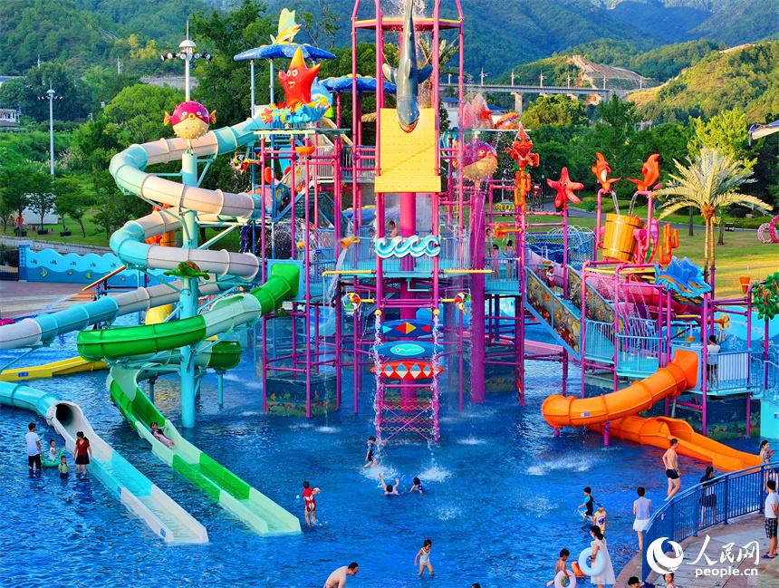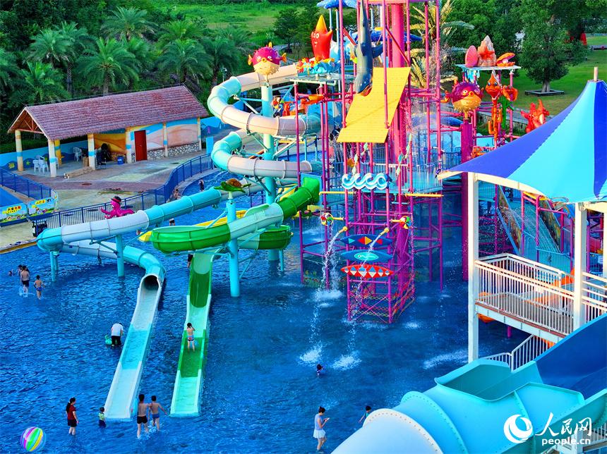 人民网石城6月30日电 (朱海鹏)近日,江西省赣州市石城县琴江镇大畲村的一处乡村水上乐园,不少游客少在体验彩虹滑道、海浪池、螺旋滑梯等戏水游玩项目,乐享夏日嬉水清凉。