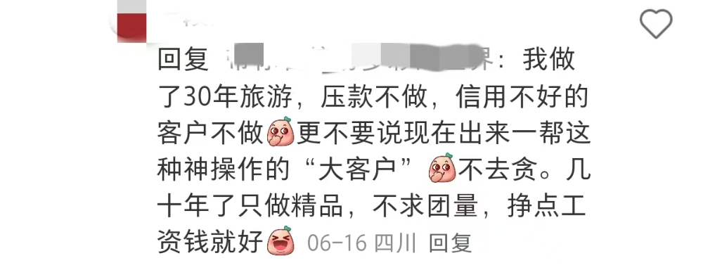 也难怪有做了30年的旅行社看到这群“神操作”的客户就嫌弃,唯一的“奢求”就是老老实实做精品,不求团量,只求挣点工资钱。