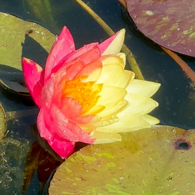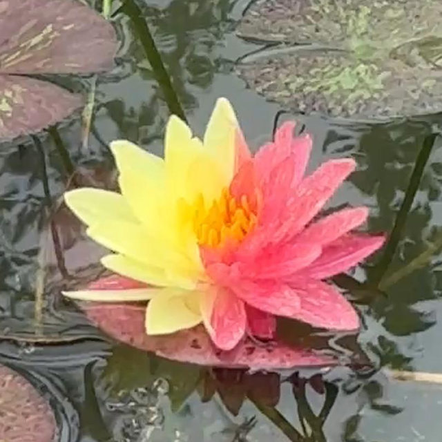 在铁塔景区水域中,一株罕见的双色睡莲正以惊世容颜惊艳众人——花瓣一半如朝霞嫣红,一半似明月鹅黄,恰似将日月精华凝于一株!