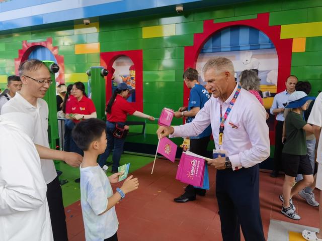 9:30,乐园主入口闸机开放第一批游客入园,入园的游客会在乐园积木大街的特定区域等待倒计时仪式;同时,乐高乐园管理层为游客赠送旗帜。