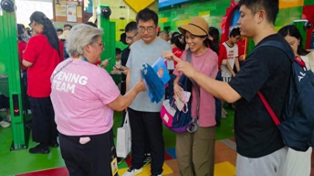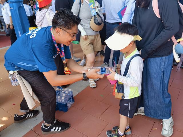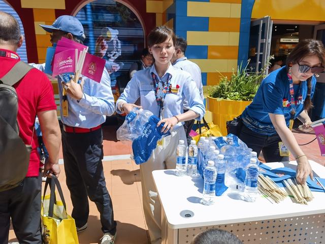 记者注意到,第一批入园的孩子们都获赠了一份惊喜礼物——1张乐高人仔黄手套兑换券和1张爆米花(小份)兑换券。同时,因为今天气温较高,不少工作人员分布在入口处附近,热情地向游客们免费派送瓶装矿泉水。