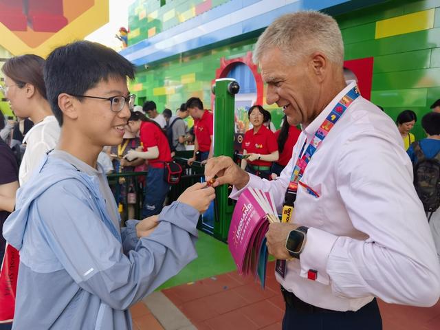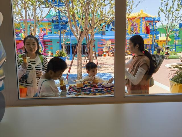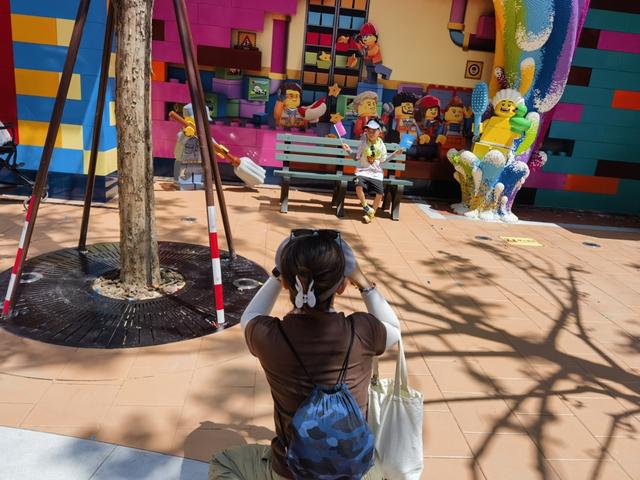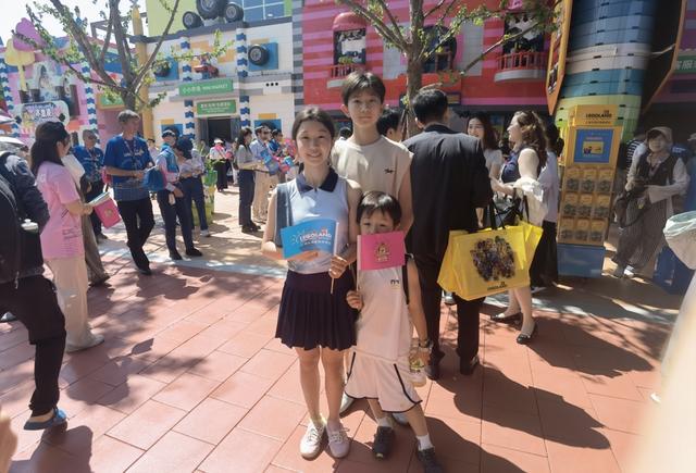 在乐园入口处,16岁的少年小应说着英语,与一位老外工作人员交换了乐高小人仔。他和爸妈、妹妹一家四口从市区开车过来,并没有特别想玩的项目,准备走走看看随意玩。