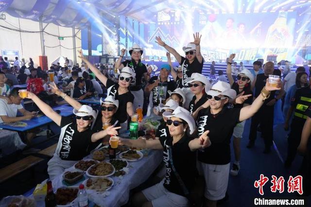 7月5日晚,游客在第二十三届哈尔滨国际啤酒节畅享清凉啤酒。 李嘉文 摄