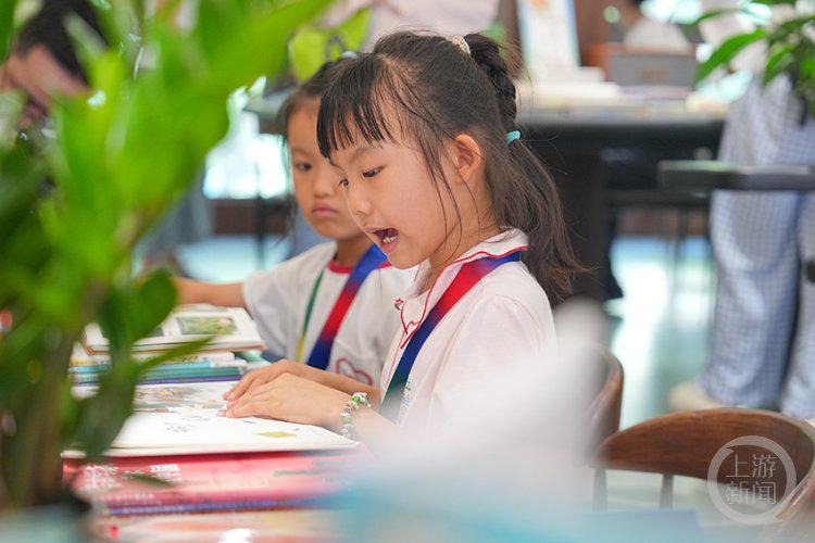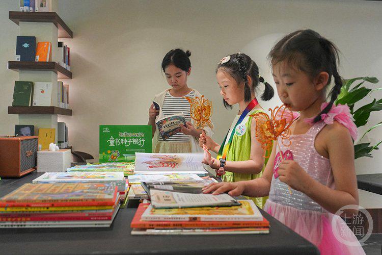 在偏岩古镇童书漂流驿站,孩子们在阅读自己喜爱的书籍。