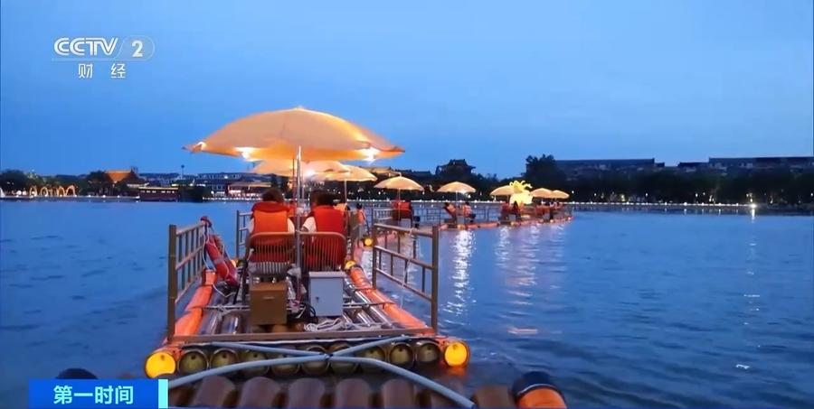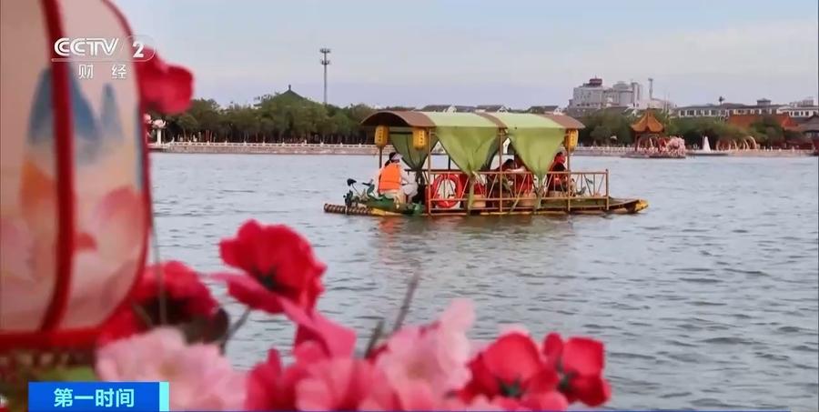 在河南开封,游客能坐船体验“宋朝人的一天”,船上设有互动诗词小游戏,市内的八大景区通过汴河水道“串珠成链”,吸引游客参与其中。