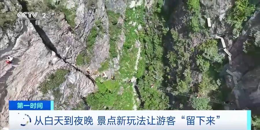 体验感同样为自然景区注入新活力,在河北白石山,游客登上海拔1900米的悬崖,近距离感受壮丽云海和嶙峋奇峰。刚投入使用的悬崖大荡绳、云中飞索等体验项目,让自然景观化身探险乐园,游客平均停留时间从原来的几小时延长至一天以上,景区还专门推出夜游项目。