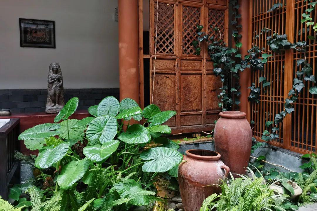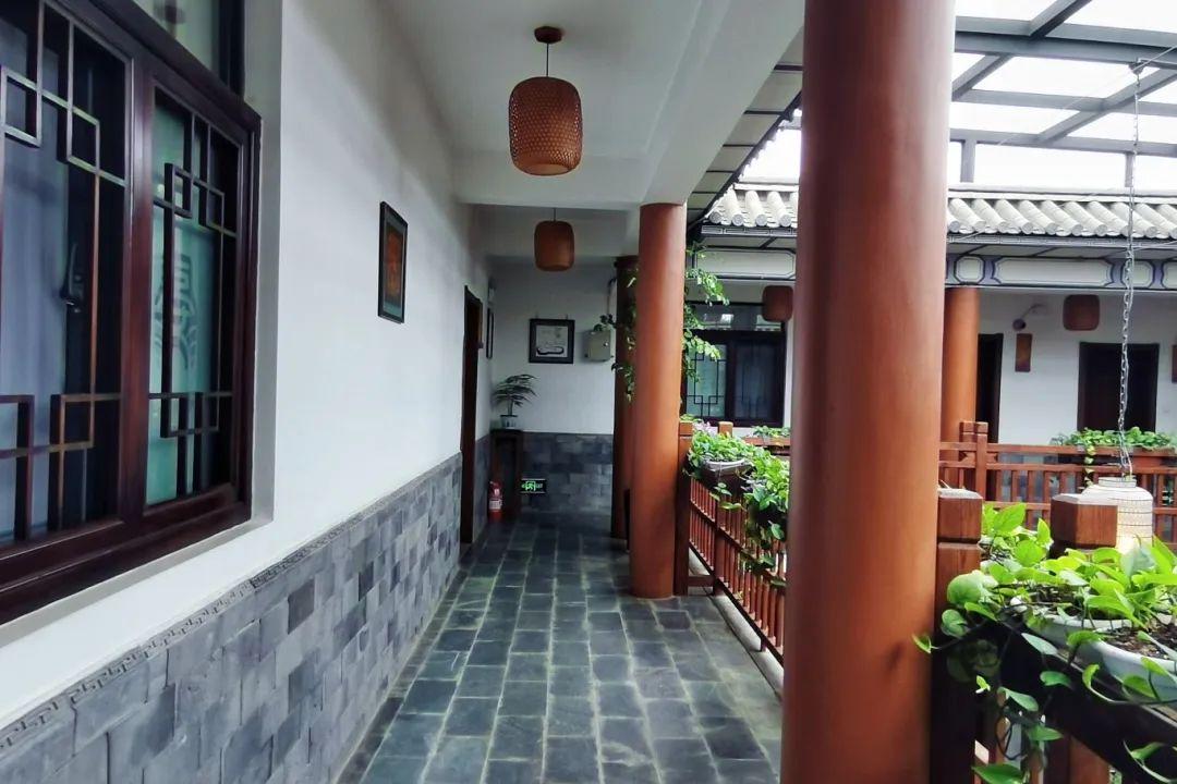 客栈保留传统白族民居风格,外观古朴如隐士居所。推开朱漆木门,中式建筑的精妙便扑面而来。青瓦白墙间,榫卯结构的梁柱撑起岁月,镂空的围栏、窗棂透出光影,流水造景旁的小狮子憨态可掬,每一处细节都暗含着“移步换景”的东方智慧。