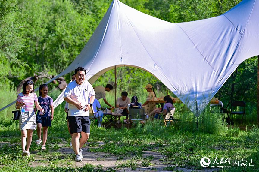 游人在洮儿河国家湿地公园休闲娱乐。王正摄