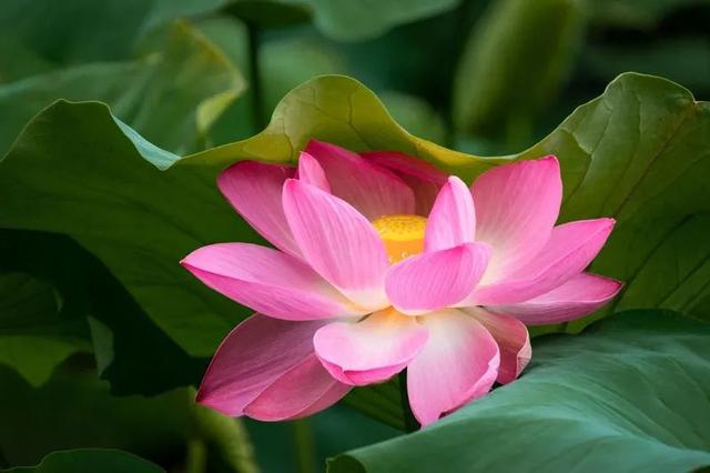 粉色的荷花从荷叶间探出头