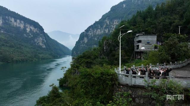 摄制组在乌江画廊彭水段观景台合影(央广网发 《沿着纬度听中国》纪录片摄制组供图)