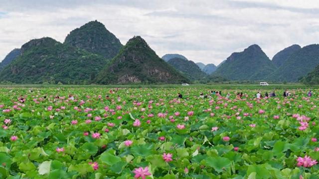 盛夏时节,云南省文山壮族苗族自治州丘北县普者黑风景区风光如画,万亩荷塘迎来盛放。