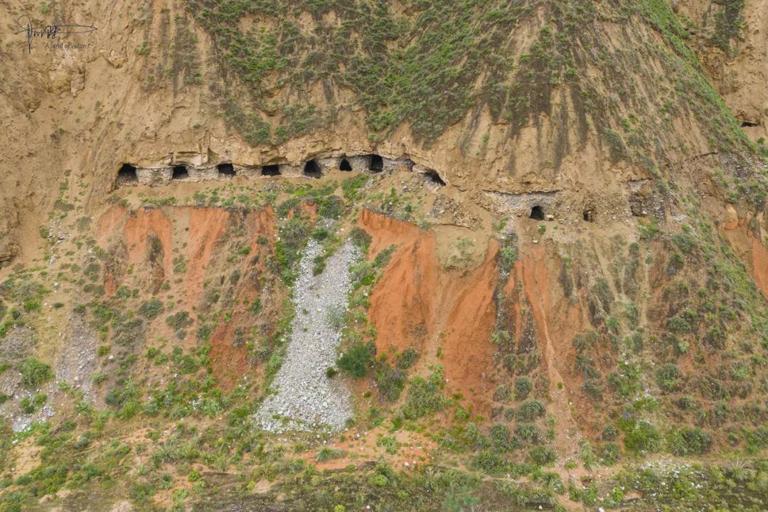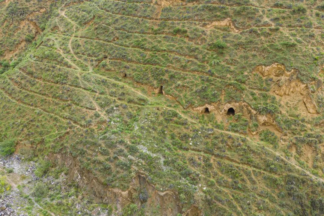 航拍视角下,周围的山体上有不少曾经“爆破”或者修路过的痕迹,当然,也不排除会涉及一些当地的古老传统或者辛秘,感兴趣的朋友可以去探探险,只是路得自己找哦。
