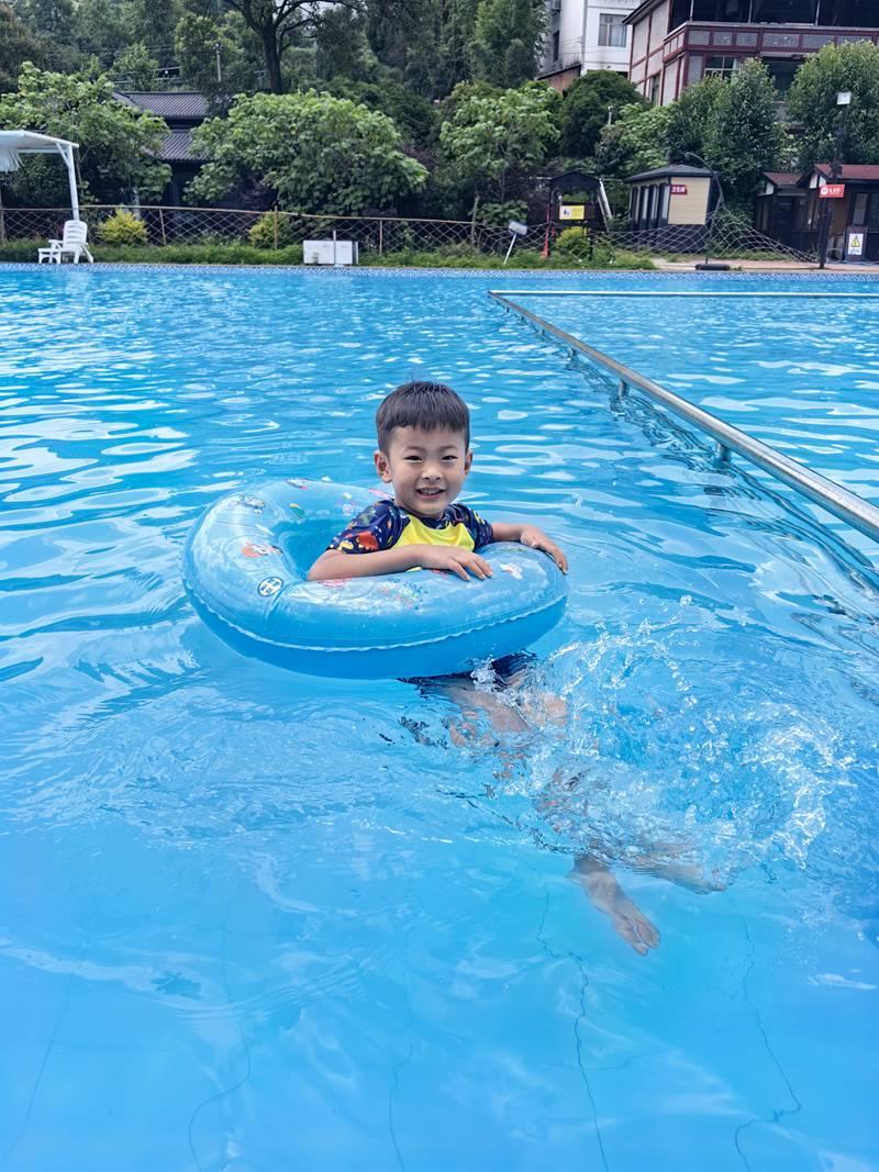 小朋友在泳池游泳。