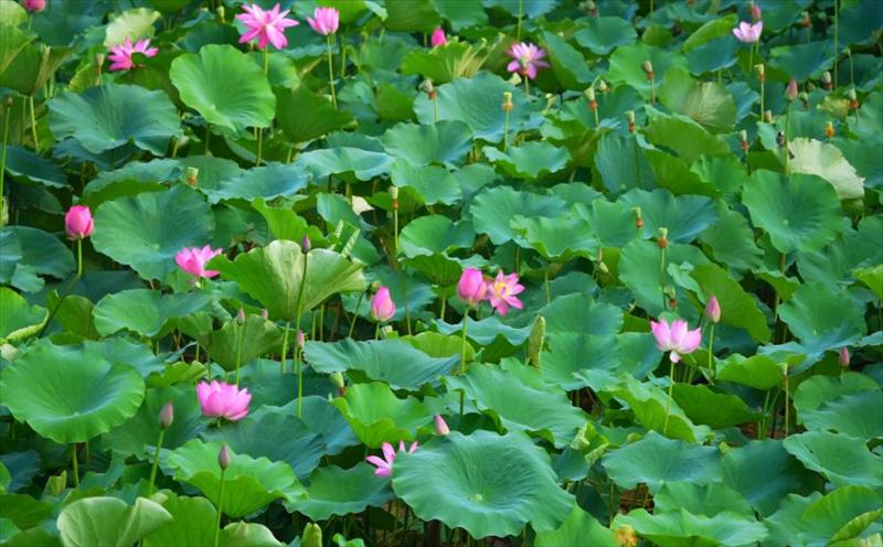 踏入湿地,荷叶层层叠叠,如翠绸铺展,高低错落间,绘就自然曲线。粉白荷花,似仙子临世;有的含羞,藏心事于花苞;有的热烈,展芳华于天地;有的半掩,露娇憨之态;清风过处,荷枝轻摇,花叶摩挲,暗香浮动。
