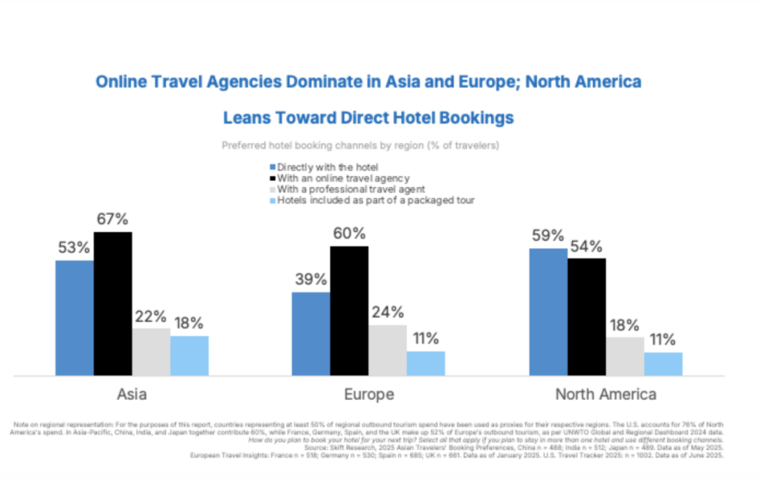 相比之下,北美游客仍更偏好直接向酒店预订(59%),这很可能与品牌酒店网络的强大基础设施和忠诚度项目的深度运营有关。