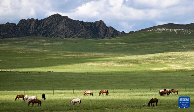 盛夏时节,内蒙古锡林郭勒盟东乌珠穆沁旗草原迎来最美季节。广袤无垠的绿茵如海般铺展,洁白的蒙古包点缀其间,成群的牛羊悠然自得。天光流转,巨大的云影在大地上缓缓移动,与起伏的草浪共同绘就一幅壮阔而宁静的游牧画卷。