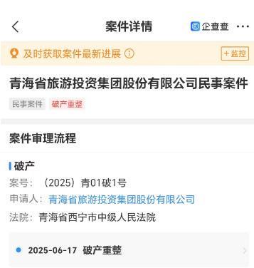 2025年6月4日,西宁市中级人民法院根据青海旅投的申请,裁定受理其破产清算一案,并指定清算组担任管理人。