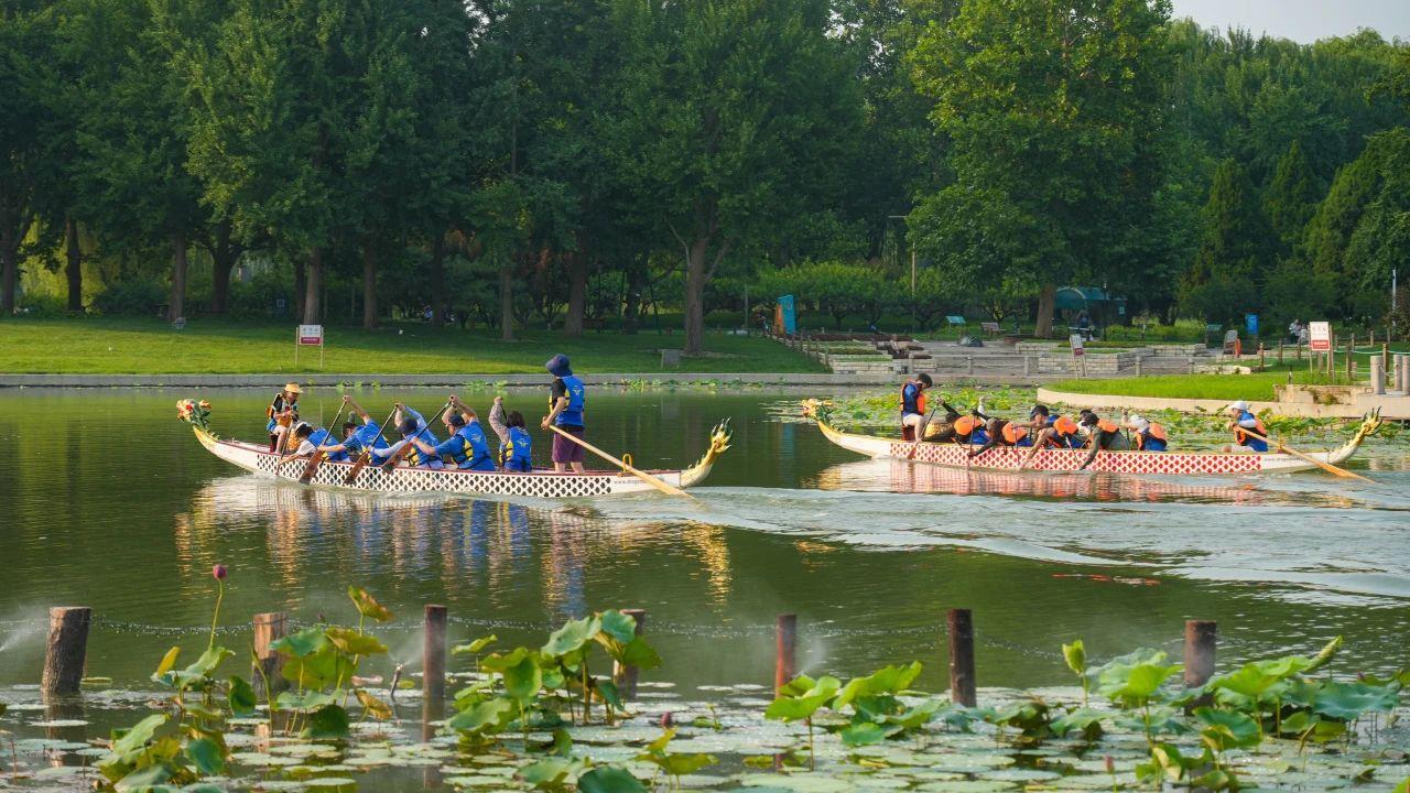 一场别开生面的龙舟竞渡在红领巾公园上演。朝阳区园林绿化局供图
