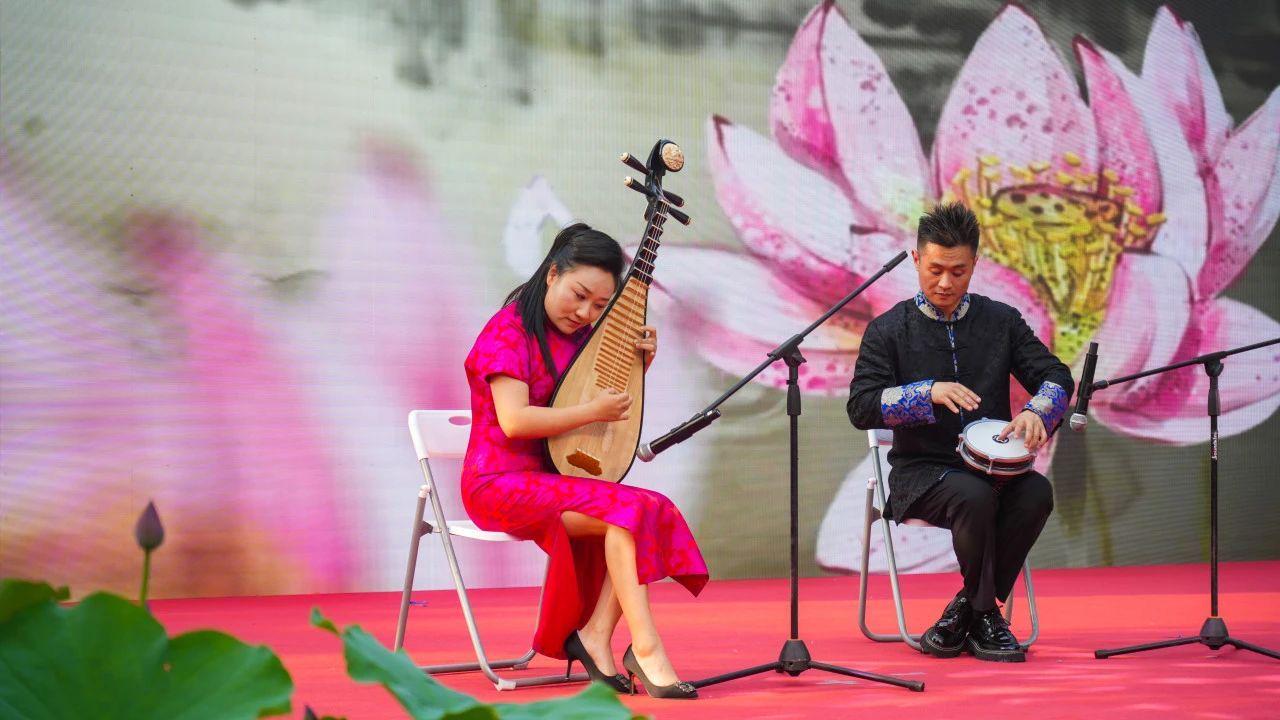 荷花文化节开幕式上,中央民族乐团带来高水准的国风雅乐演出。朝阳区园林绿化局供图