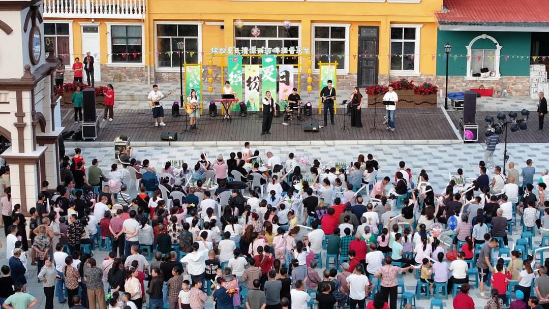 除专业演出外,群众与游客的才艺展示更添烟火气:游客的萨克斯独奏浪漫悠扬,姐妹花演唱的《铿锵玫瑰》活力绽放,70多岁当地群众刘德畅的《打花鼓+快板》表演则展现了当地深厚的文化底蕴,让观众在音乐中感受社区活力与邻里温情。