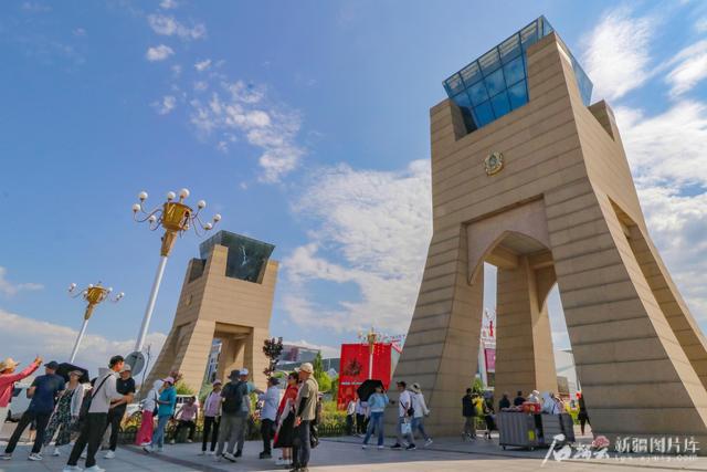 7月3日,游客在中哈霍尔果斯国际边境合作中心参观游览。冯海森摄