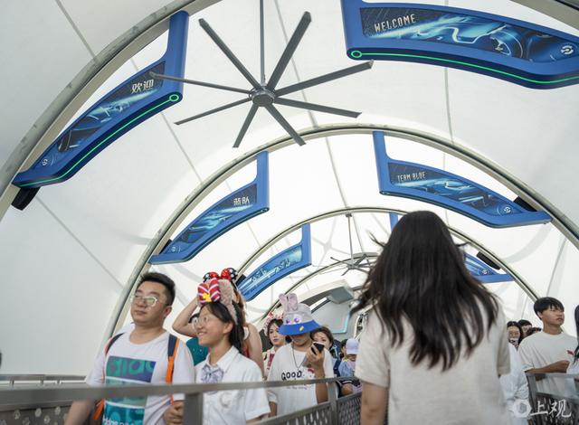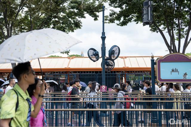 在乐园多个区域,例如乐园主入口和安检、景点项目排队等区域加装喷雾风扇、高架风扇和移动式风扇,有效提升降温效能,以帮助游客在排队过程中保持凉爽。