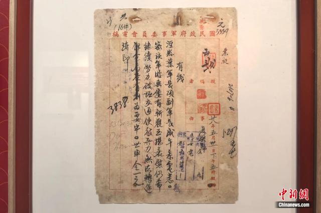 蒋介石第一次给叶挺军长、项英副军长的嘉奖令。张强 摄