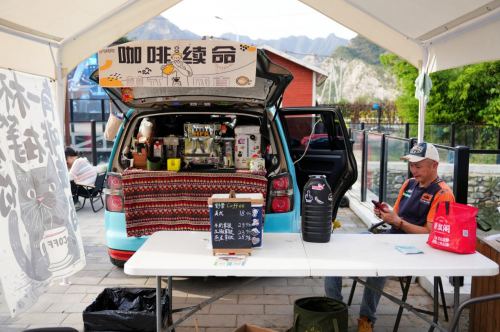 市集区刚开放,就成了“人气聚集地”——本土特色美食摊位前,妙峰山玫瑰、灵山绿产、咖啡、奶茶、米酒,独具特色的京西小吃吸引着大家的注意;非遗手作摊位上,喜鹊毛猴、国画、版画、文创、陶艺一一呈现,非遗传承人们守在摊位前,指尖翻飞间尽显老手艺的巧思,游客们纷纷驻足细看,轻声追问。