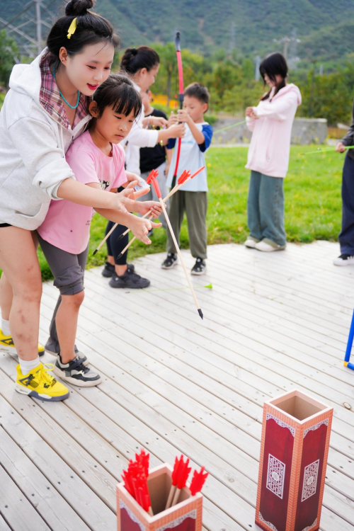 投壶、射箭、沙包投球、投飞盘四个游戏区,简直是“快乐制造机”!参与者们手持羽箭,屏息凝神,目光专注地投向几步开外的细颈铜壶。射箭区的人们弯弓搭箭,神情严肃,努力瞄准远处的靶心。颜色鲜艳的沙包被抓起,精准奔向前方目标。投飞盘的人们跑跳着,试图将飞盘准确投入指定的位置。简单的游戏里,满是纯粹的欢乐。