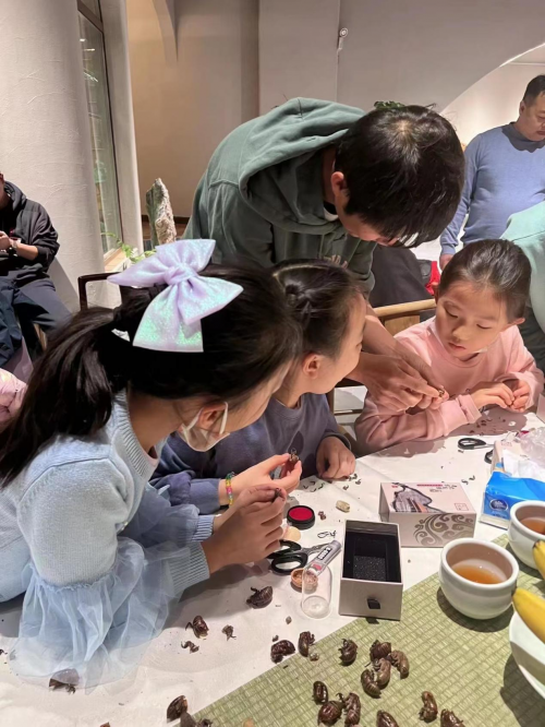 非遗体验区,绝对是本次活动的“硬核亮点”。非遗传承人现场坐镇,从技艺讲解到动手指导,每一步都耐心细致。从喜鹊毛猴、国画、版画、文创、陶艺,参与者们在传承人的指导下亲自动手,在指尖传承非遗手作。