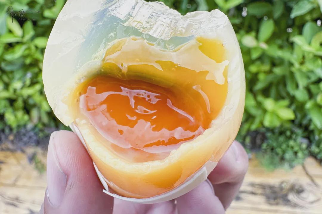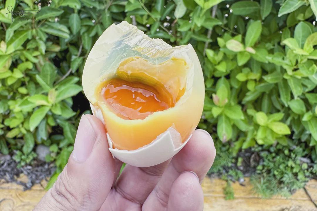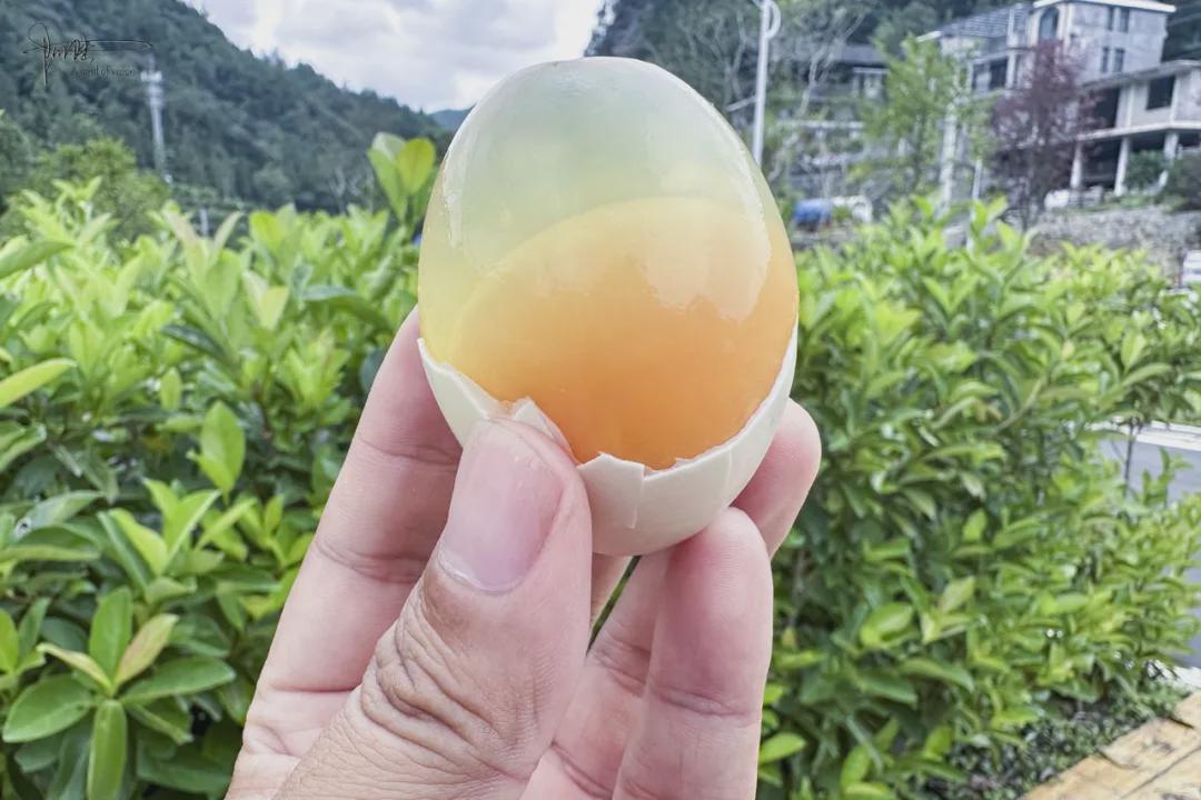 由于之前在地图上搜索附近美食和商铺的时候,看见有好几家皮蛋店,当时觉得有点奇怪,在碰到当地人后自然也就提起了这事。结果相关的典故、来历或者民俗是只字未提,却直接被他用最真诚的“尝一尝”直接把我给搞得有点“受宠若惊”了。假装客气地推脱几下自然也就顺势收下(哎,话说自己的脸皮好像越来越厚了哦)。