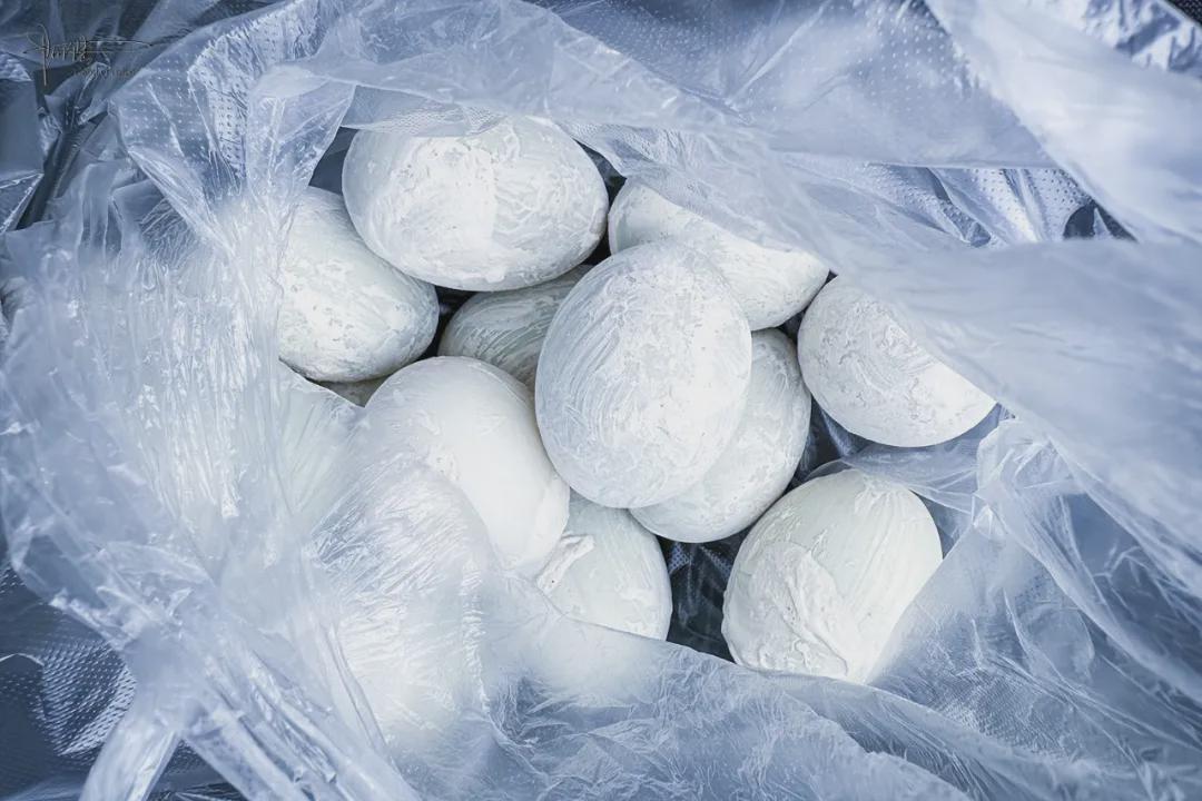 这种水晶皮蛋的制作方举动貌似简单:“将石灰粉、盐、食用碱等原料调制成料浆,再将洗净的鸭蛋在料浆中滚动,均匀裹上一层厚厚的浆泥后,接着将裹好浆泥的鸭蛋放入容器中密封保存,等待一段时间,鸭蛋将转化为水晶皮蛋。”但如果人见人会,想来也不会只在小范围内传播了吧,(至少在杭州的市场上,好像就没见过这种皮蛋,注意,它不是我们见过吃过的那种“变蛋”哦)。
